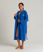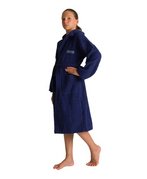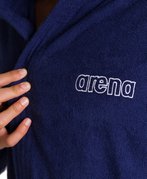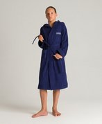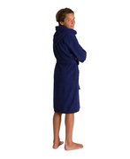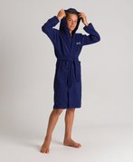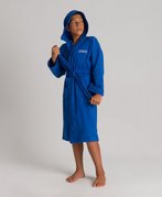 Универсальный детский махровый халат отлично подходит для посещения бассейна, бани, сауны, а также для ношения дома. Махровая ткань очень хорошо впитывает влагу, ее ворсинки-петельки создают теплую воздушную прослойку на теле, легко и приятно массируют кожу, не вызывая раздражения кожи и других аллергических реакций. Халат выполнен в однотонном цвете, имеет логотип бренда. Детали: два кармана, капюшон, пояс.