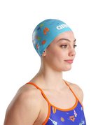 Идеальный вариант для интенсивных тренировок и подготовки к стартам. Благодаря классической форме шапочка плотно облегает голову, не образуя складок и морщин. Изготовлена из высококачественного гипоаллергенного силикона, который обладает превосходной мягкостью и эластичностью. Тематические, красочные принты делают обладателей этих шапочек еще более заметными в бассейне.