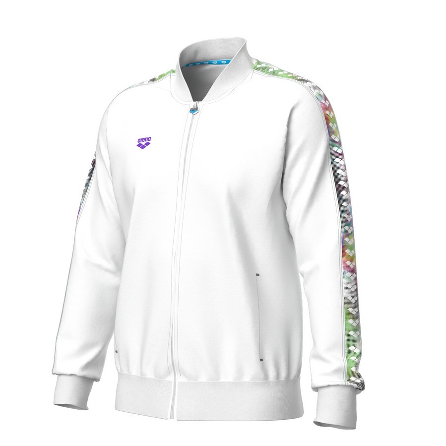 Изготовлена из трикотажного полиэстера, оснащена боковыми карманами и передней молнией, украшена легендарным логотипом Arena и полосой команды для создания образа в стиле ретро.